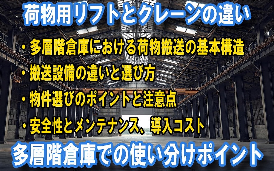 荷物用リフトとクレーンの違い|多層階倉庫での使い分けポイント